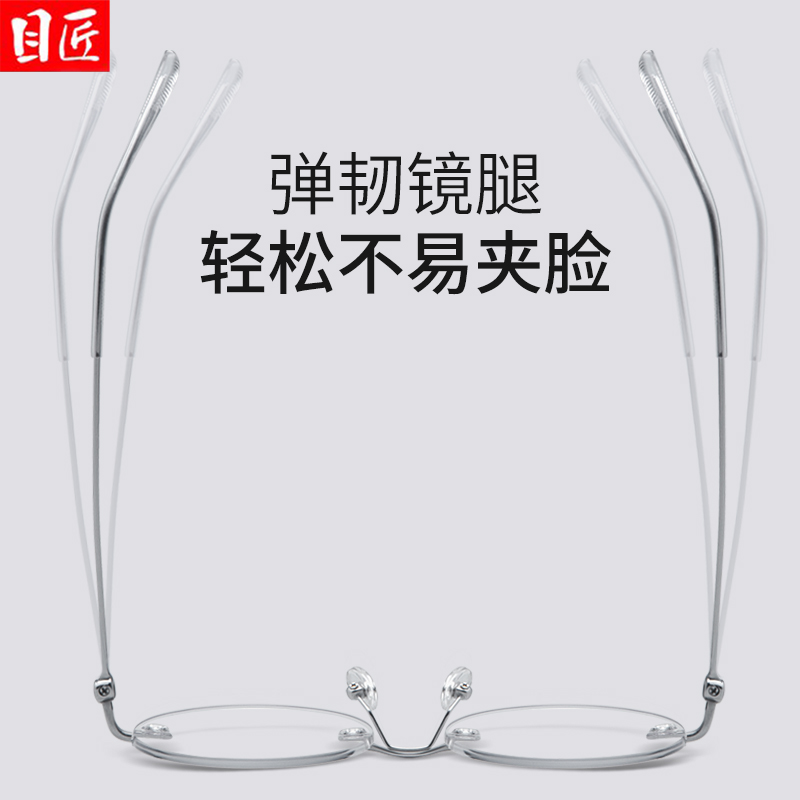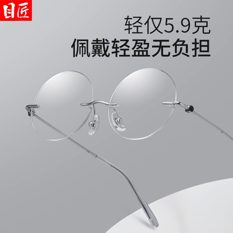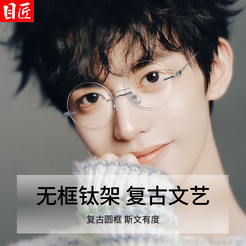 天猫超轻纯钛圆形无边框近视眼镜框男款可配度数复古小圆框小脸镜架女
