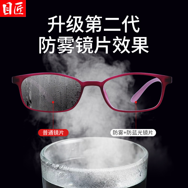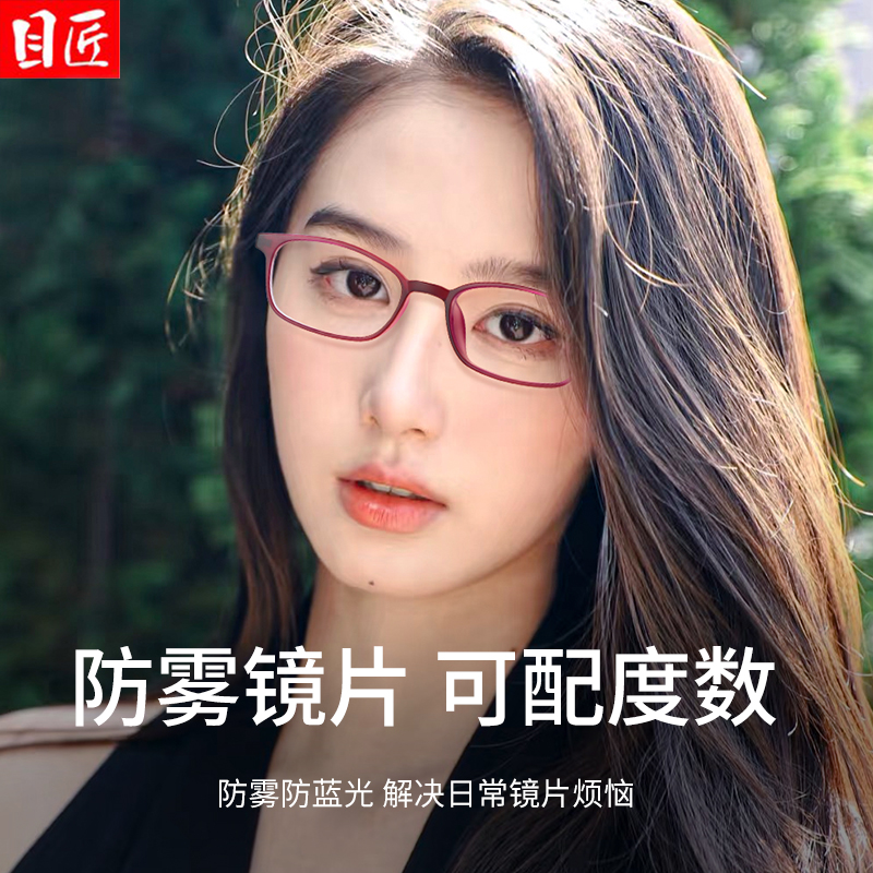 天猫超轻防雾防蓝光近视眼镜框女可配度数镜片冬季高清戴口罩不起雾镜