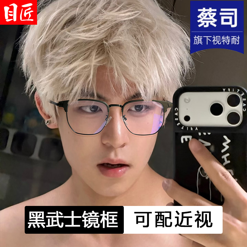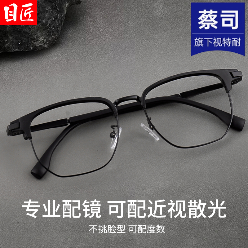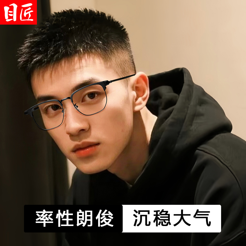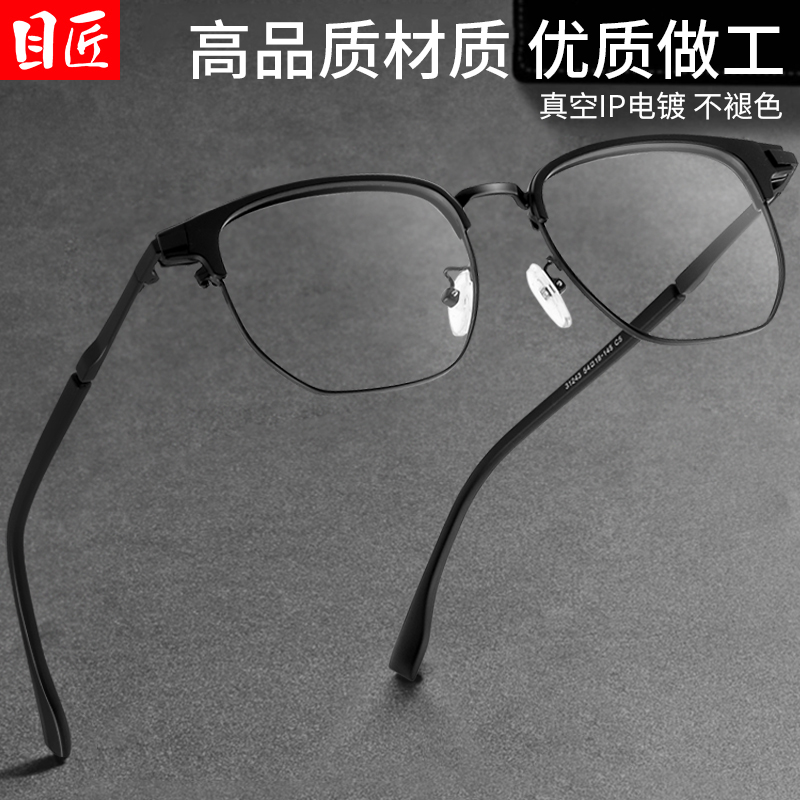 天超轻纯钛透明椰子灰色半框近视眼镜框男款痞帅可配度数防蓝光镜架