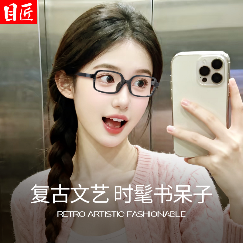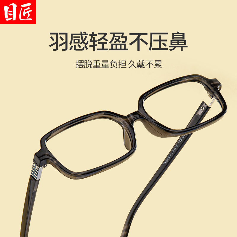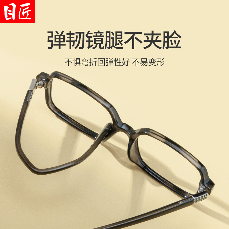天tr90复古透明灰色方框近视眼镜框男款可配度数男士灰框防蓝光镜架
