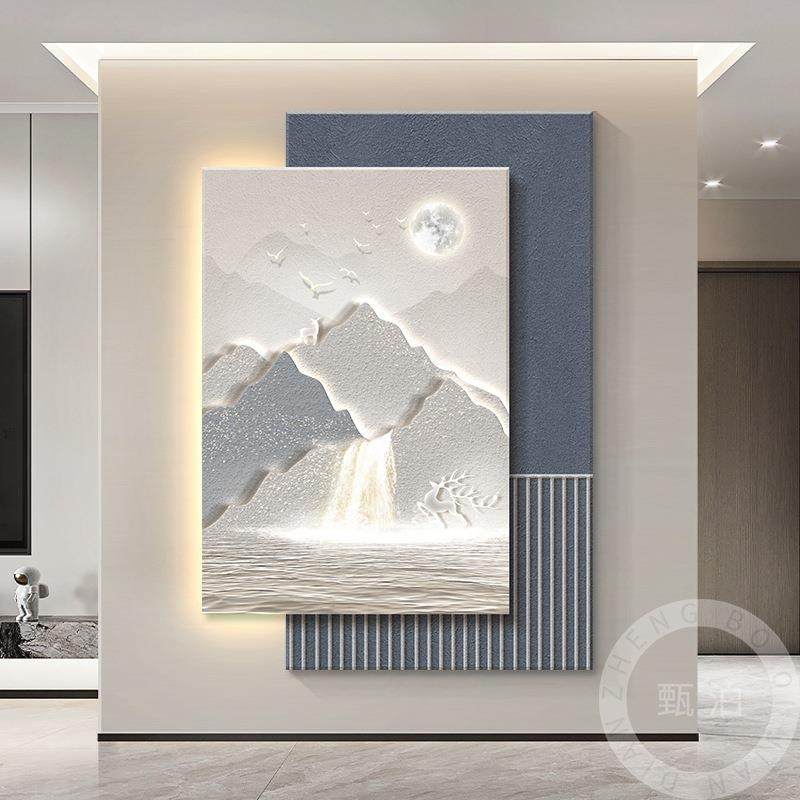 淘宝轻奢山水入户玄关装饰画2024新款高端走廊过道壁灯客厅正对门挂画
