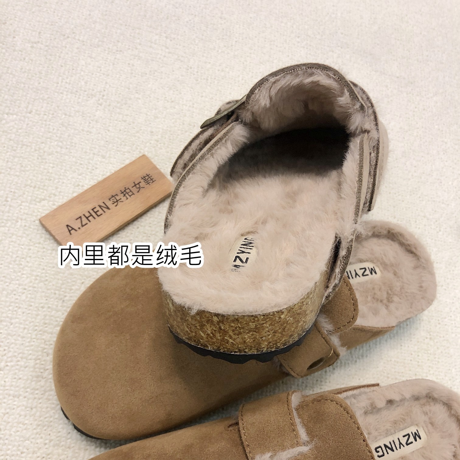淘内增高6cm~加绒勃肯鞋毛毛鞋女2025新款秋冬棉鞋厚底全包单鞋女