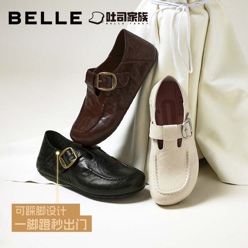 【草莓派】百思图26春新款真皮粉色德训鞋芭蕾运动休闲鞋板鞋女鞋