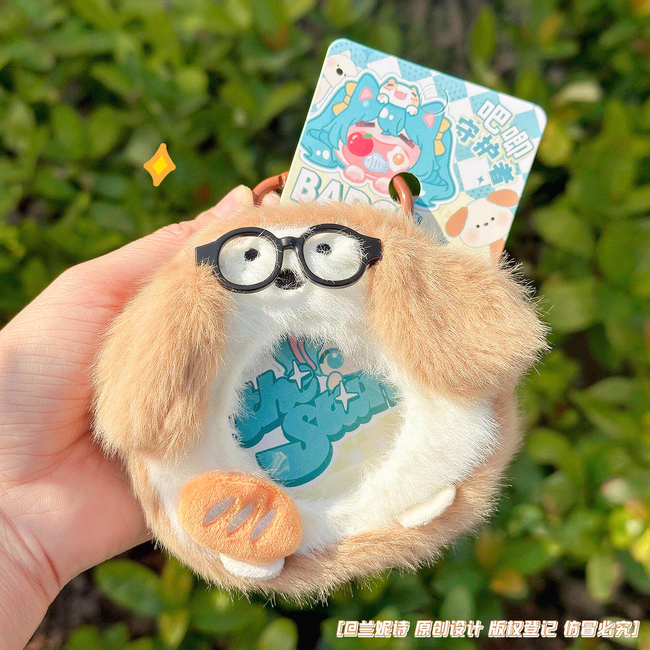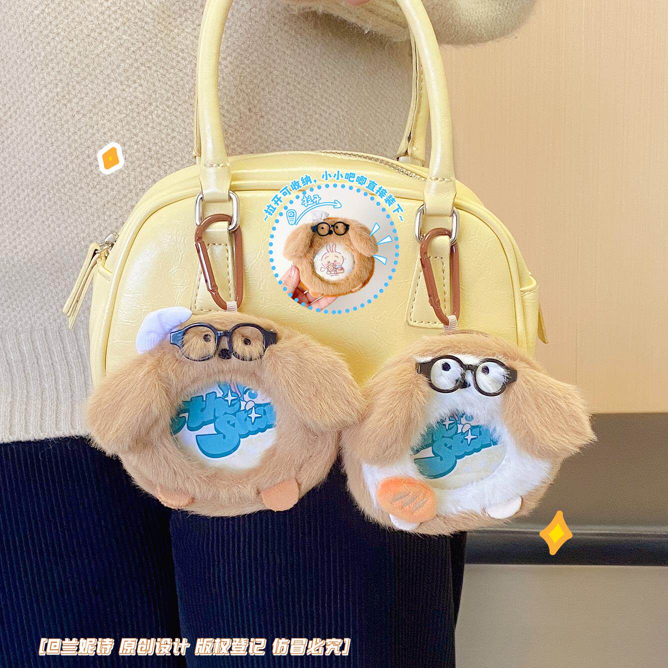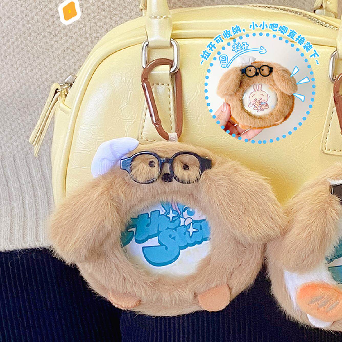 淘宝眼镜修狗毛绒吧唧包创意零钱包卡通儿童背包挂件透明徽章收纳套