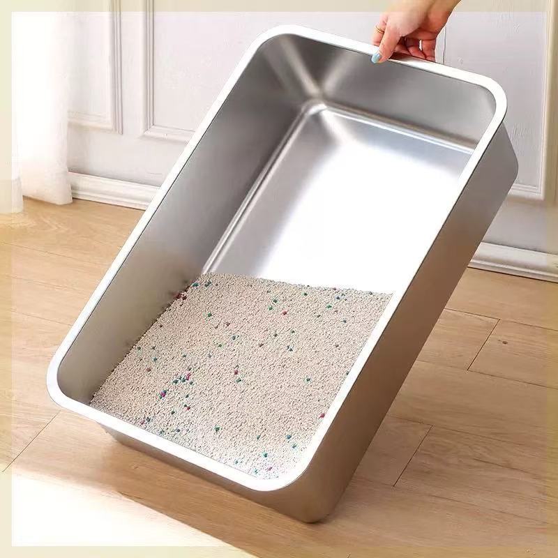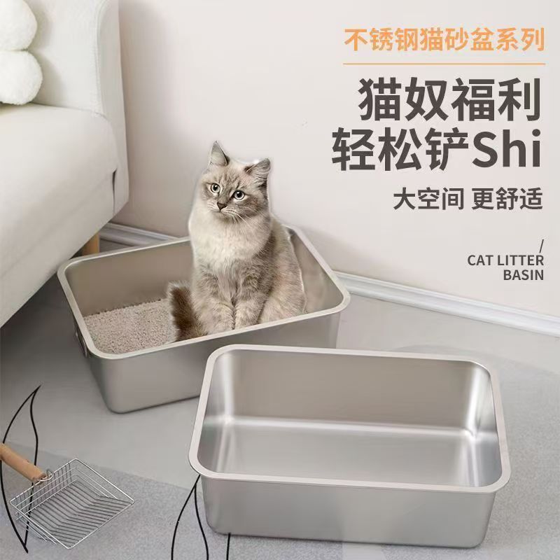 天猫不锈钢猫砂盆超大号开放式猫沙盆耐抓防外溅猫屎盆猫厕所宠物用品