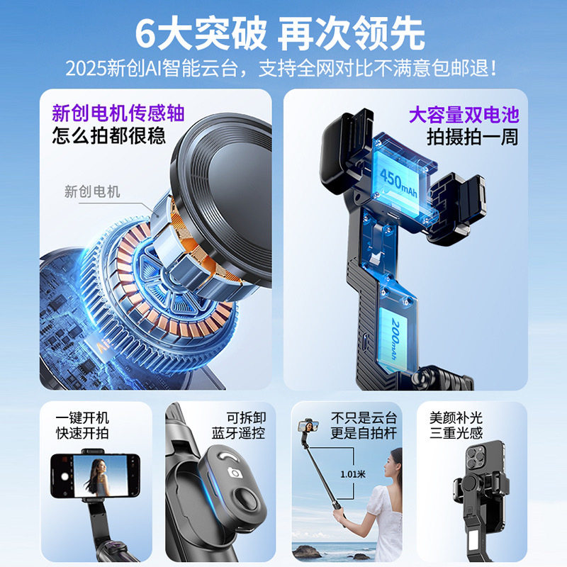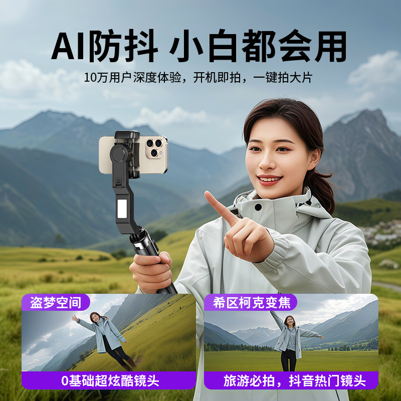 淘宝手机云台稳定器真AI智能防抖手持360度自动旋转直播支架vlog拍摄