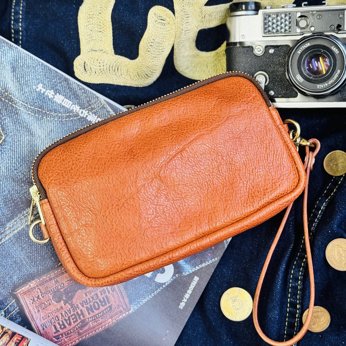 淘宝MOZE【19*4*11】头层牛皮双层拉链手拿包手腕包小众复古手机包