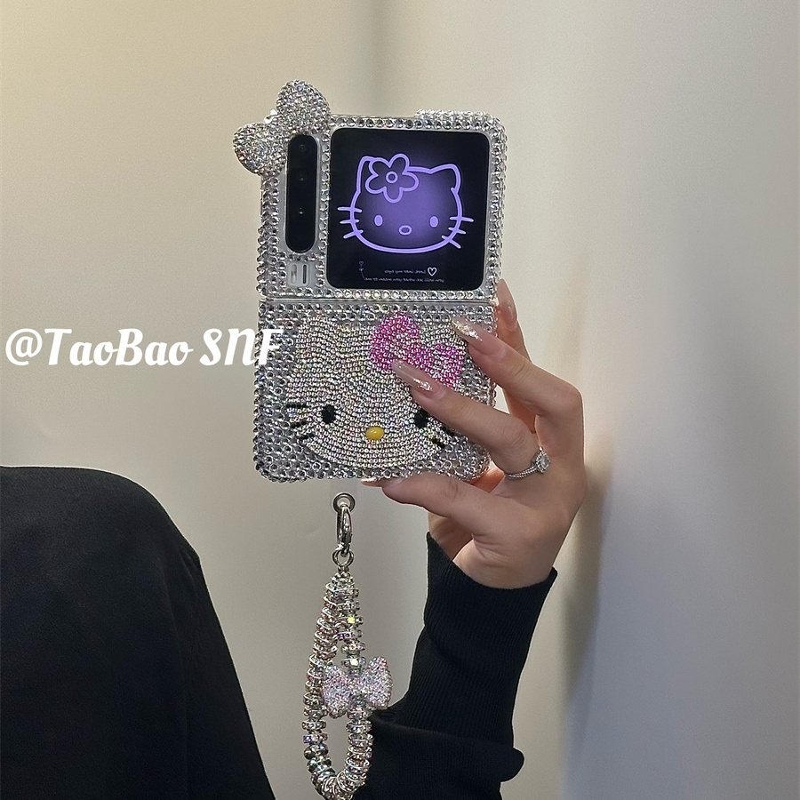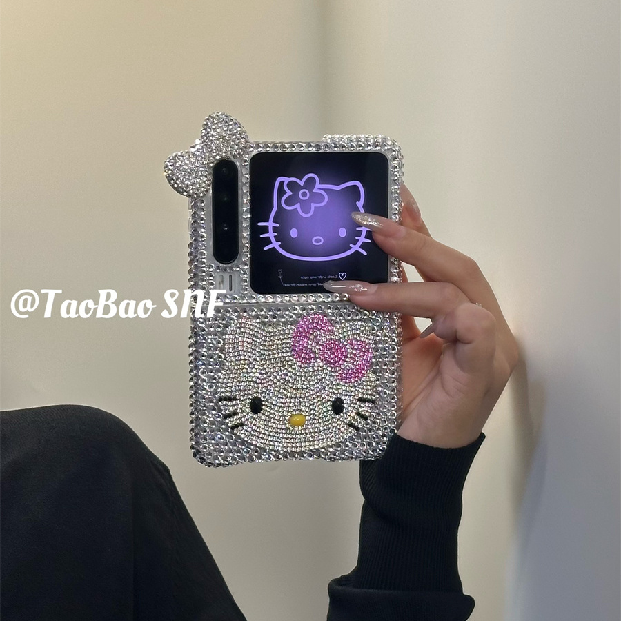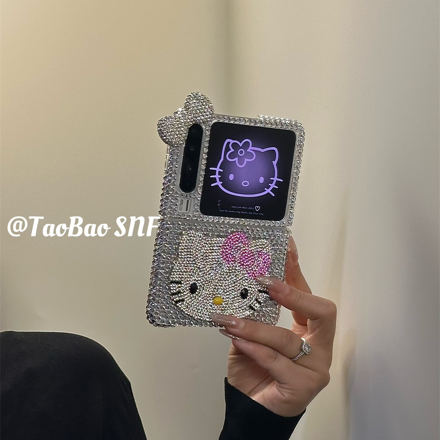 淘宝ins可爱满钻大脸kt猫适用Pura X华为Pocket2手机壳小米MIXFlip2折叠FindN3Flip三星Zflip7/6/5nova荣耀VFlip2