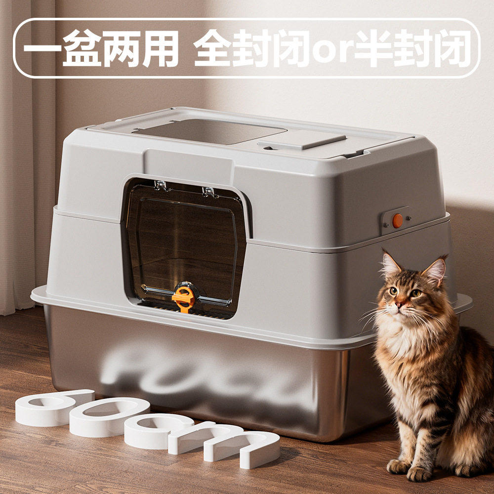 猫砂盆半封闭式防外溅带砂特大号猫厕所防臭猫屎盆猫咪用品大全
