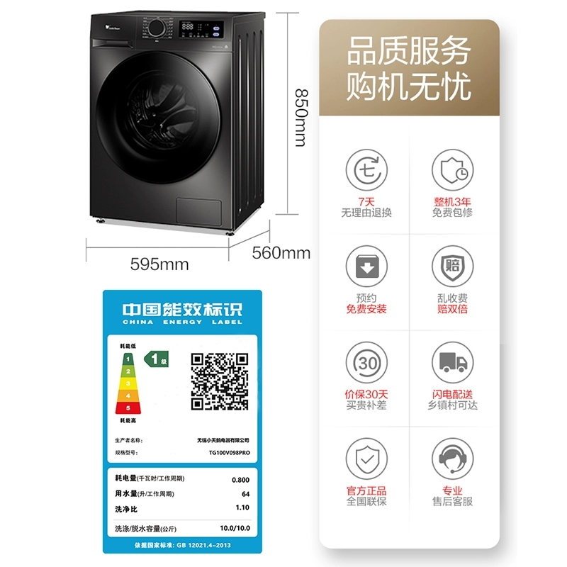 天猫小天鹅10KG洗衣机全自动家用洗脱一体滚筒家用变频官方旗舰098PRO