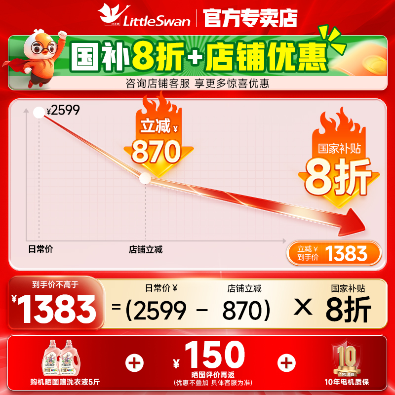 补贴20%海尔云溪3.0滚筒直驱洗衣机10kg家用全自动精华洗557