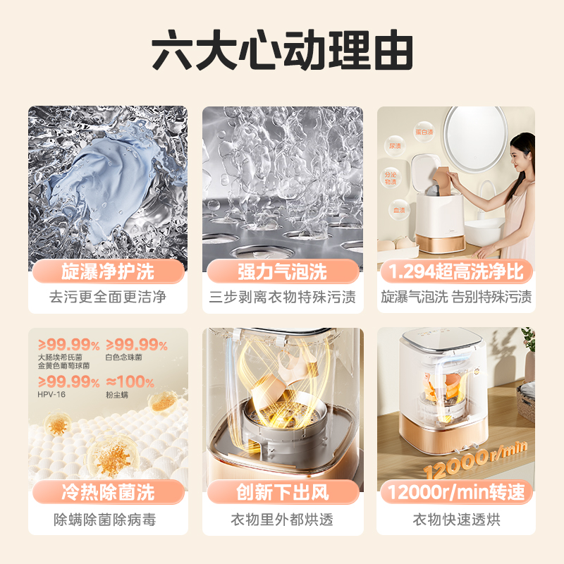 天猫美的洗烘一体家用多功能去渍除螨除菌除病毒内衣裤洗衣机清洗机