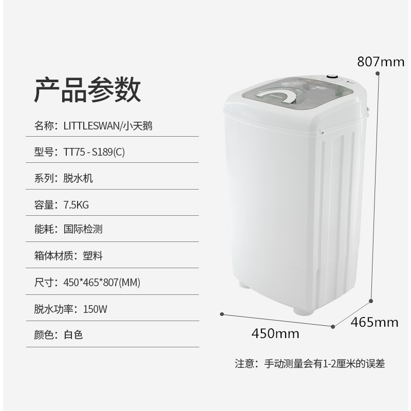 淘宝Littleswan/小天鹅 TT75-S189(C)脱水机家用甩干桶单脱机7.5公斤