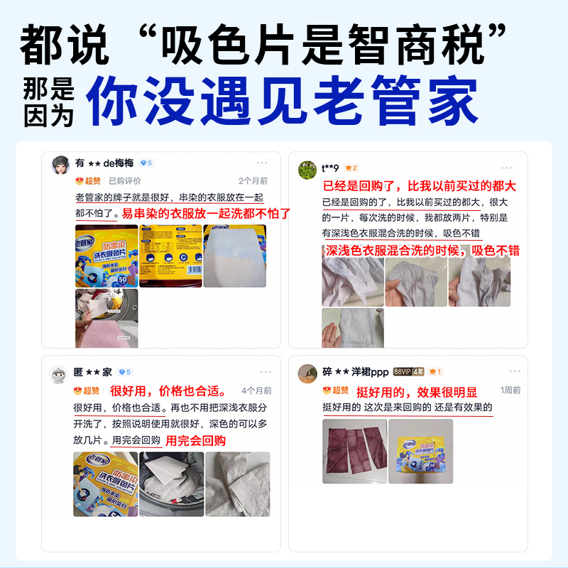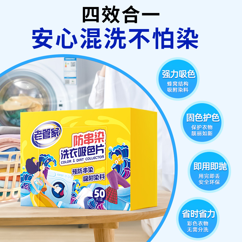 天猫老管家防串色洗衣片色母片防染色衣物衣服洗衣机吸色片护色吸色纸