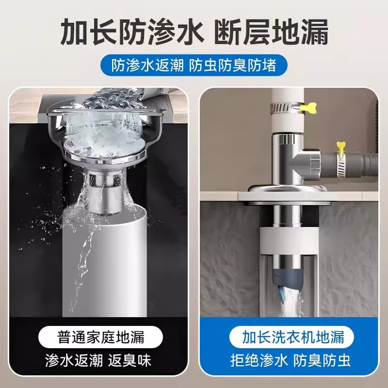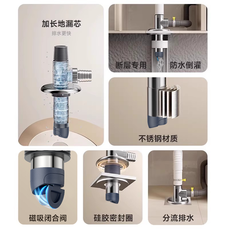 天猫艾干净洗衣机地漏断层下水三通排卫生间管道地漏通用下水防臭神器