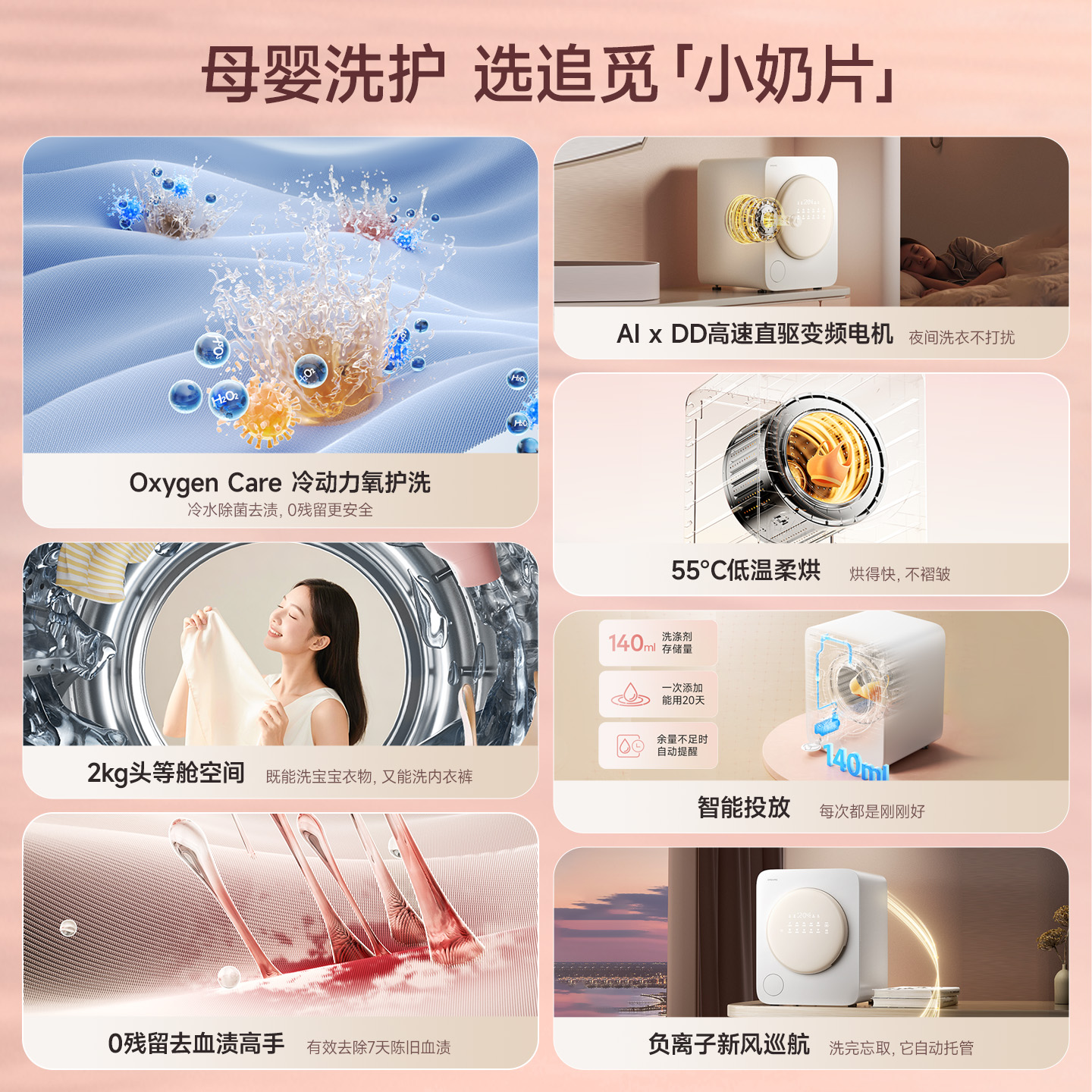 天猫追觅小奶片2kg迷你婴儿宝宝全自动洗衣机小型内衣内裤洗烘一体机