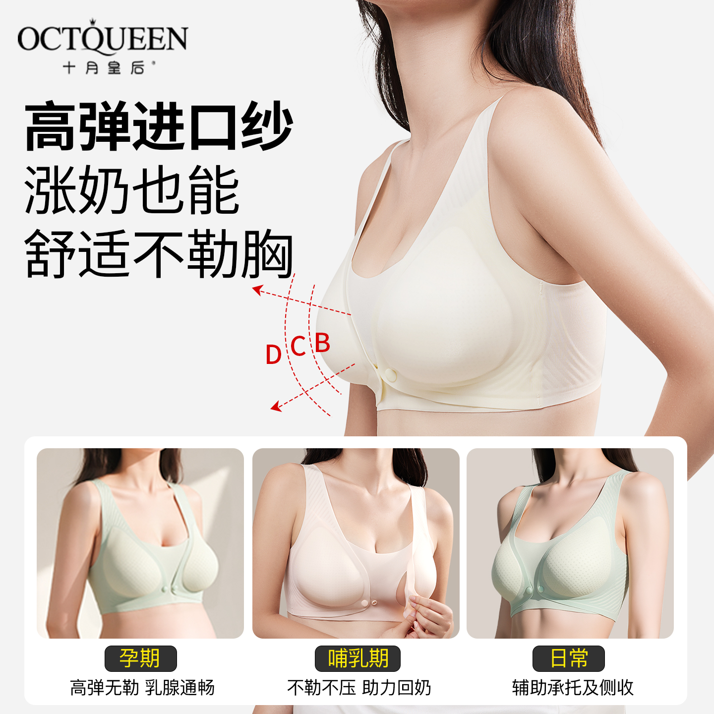 十月独宠6602女CD杯哺乳内衣一片式前开扣薄款孕妇喂奶莫代尔文胸