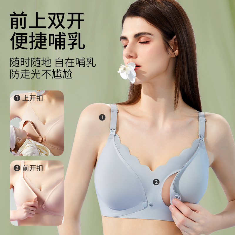 无痕哺乳内衣薄款透气前开扣孕妇文胸聚拢防下垂产后专用喂奶胸罩