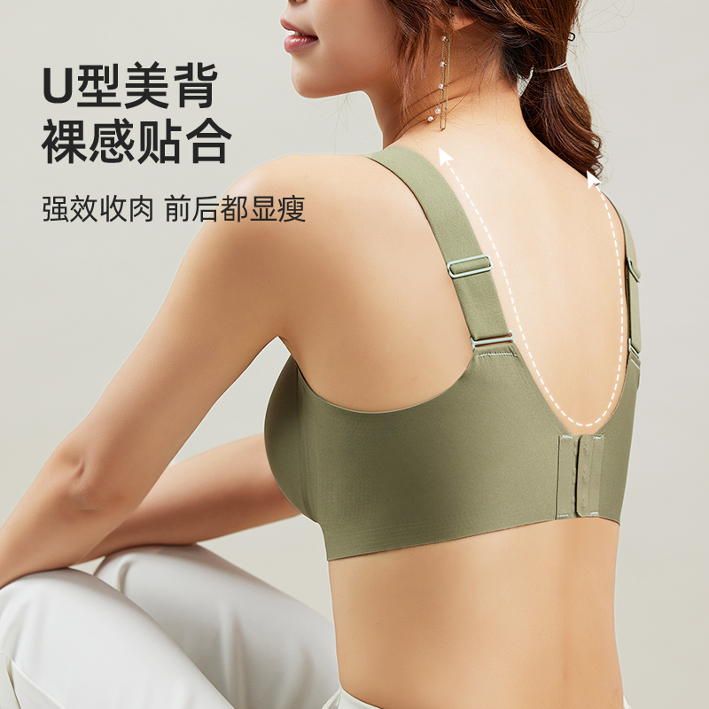 婧麒女士内衣大胸显小聚拢无痕背心薄款无钢圈孕妇运动文胸罩新款