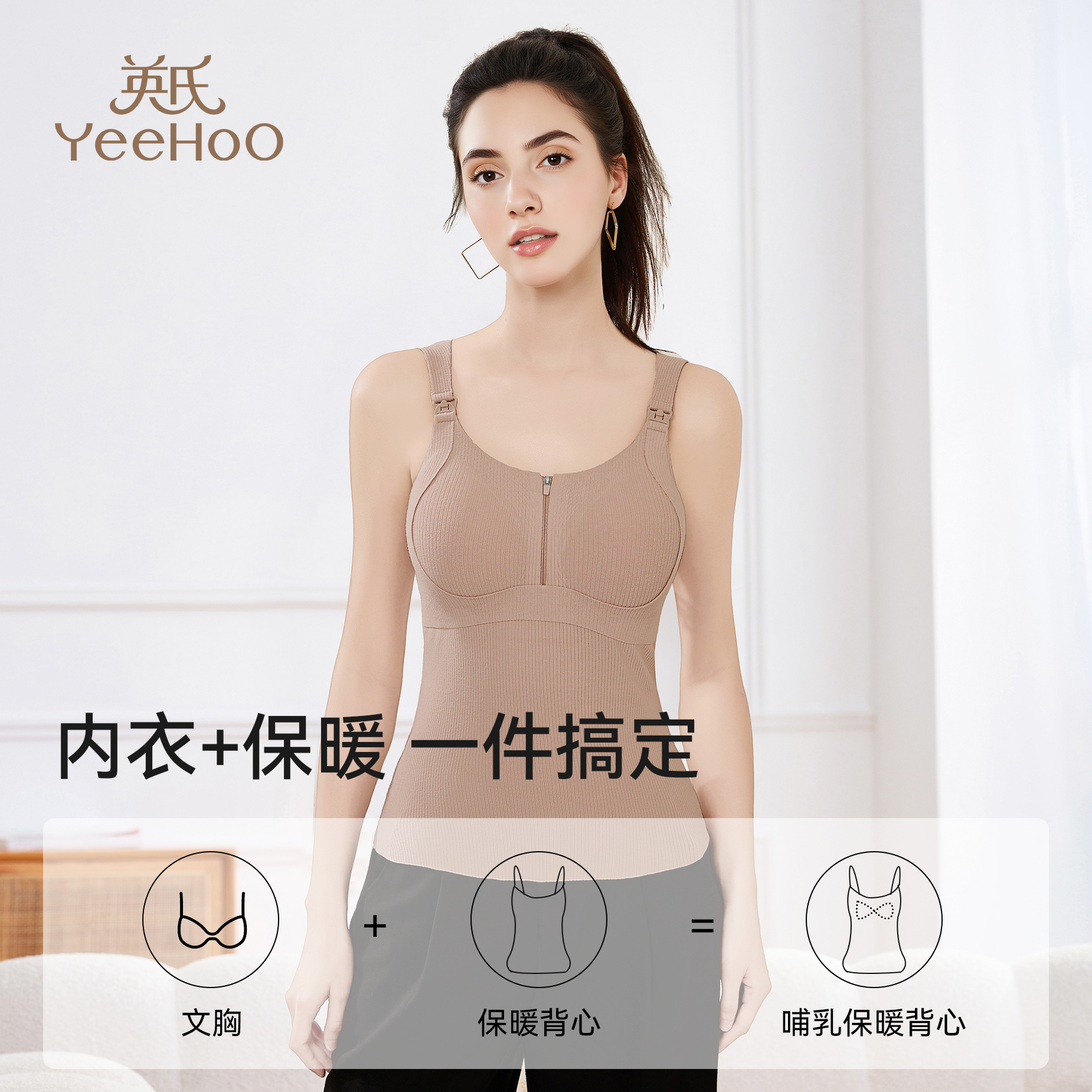 天猫英氏孕妇保暖哺乳背心产后喂奶免穿文胸秋冬加绒高弹吊带打底内衣