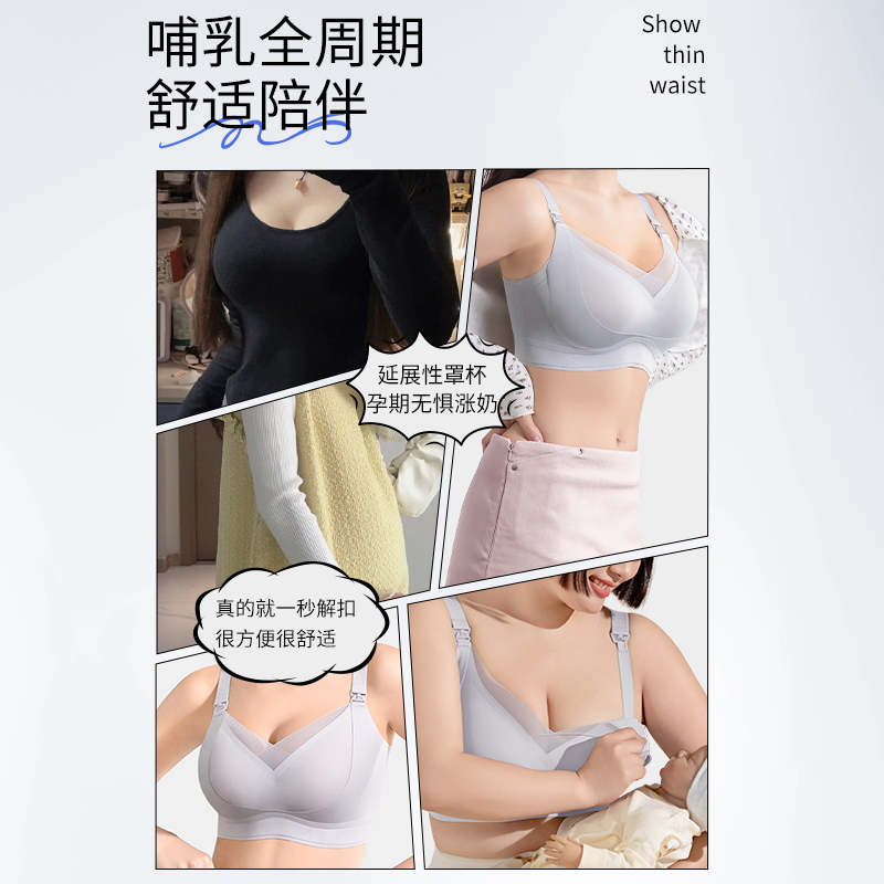 淘无痕哺乳内衣薄款透气前开扣孕妇文胸聚拢防下垂产后专用喂奶胸罩