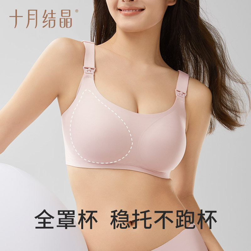 天猫十月结晶孕妇内衣无痕女固定杯美背心式哺乳薄款大胸显小大码文胸