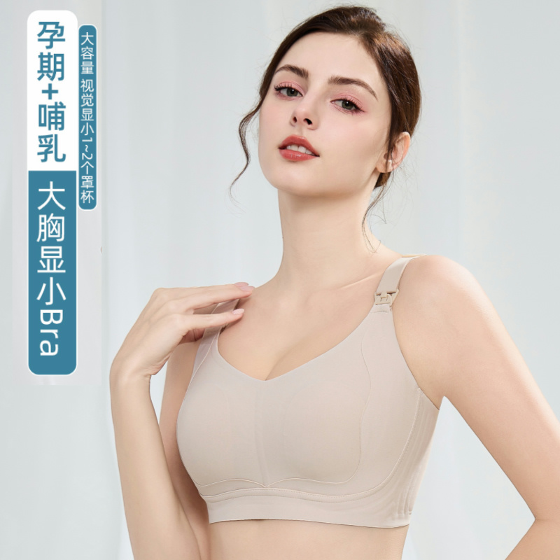 芬腾哺乳内衣大胸显小聚拢防下垂孕妇产后喂奶专用无痕大码文胸罩