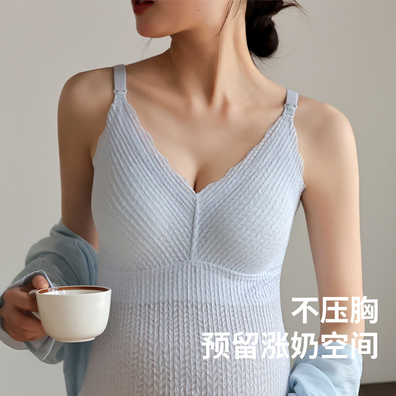 哺乳内衣纯棉夏季薄款产后喂奶专用前开扣背心式睡觉可穿孕妇文胸