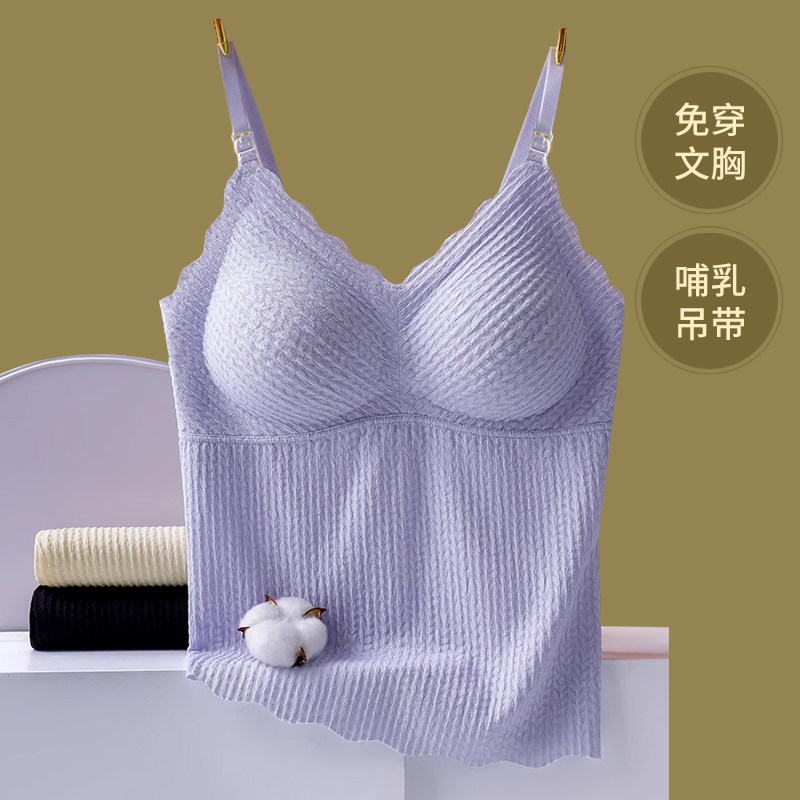 哺乳背心吊带孕妇内搭打底衫喂奶春夏季月子可外穿免穿文胸假两件