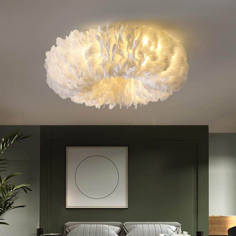 淘宝羽毛卧室吸顶灯简约现代客厅灯儿童房间温馨浪漫主卧ins爆款灯饰