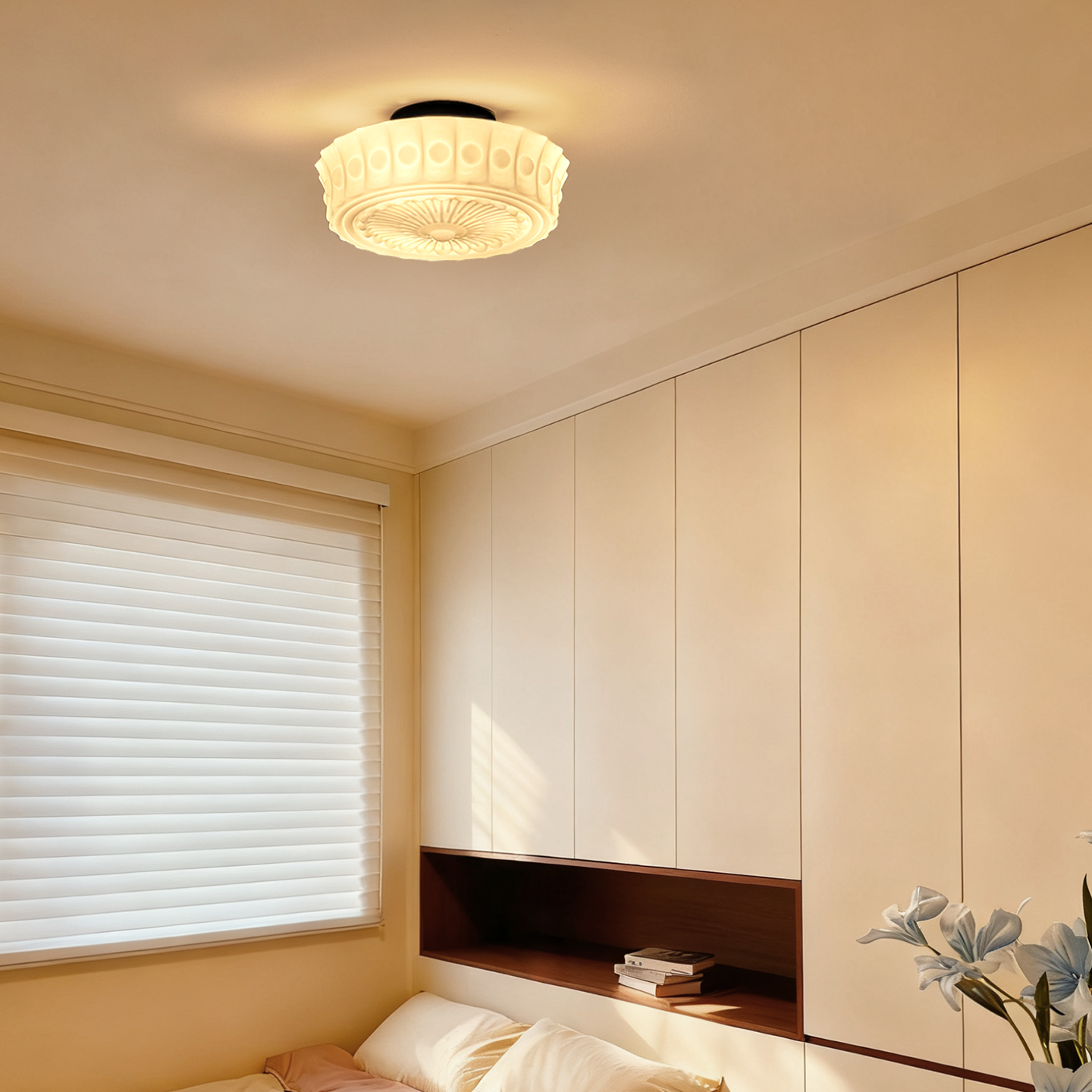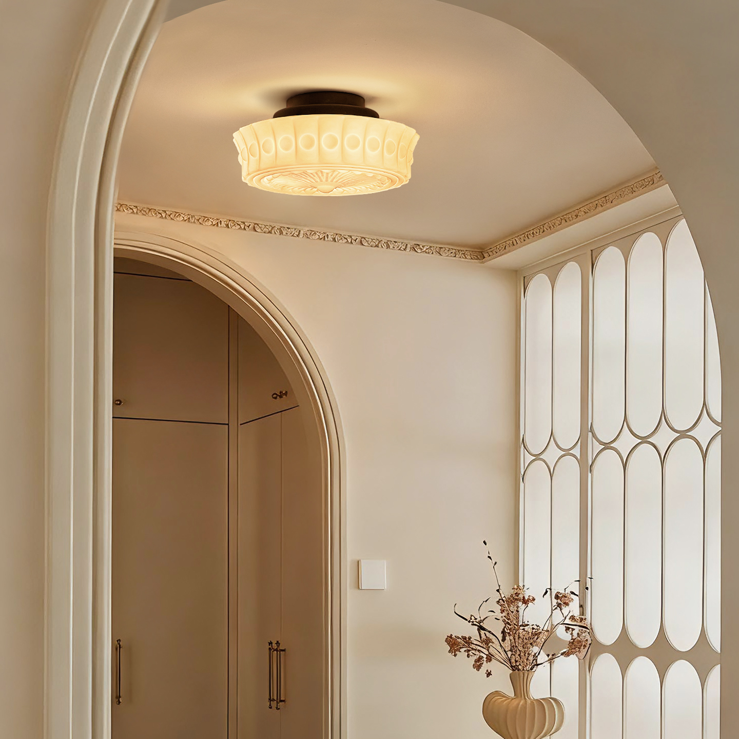 天猫法式卧室吸顶灯次卧儿童房间中古奶油风美式复古书房阳台玻璃灯具
