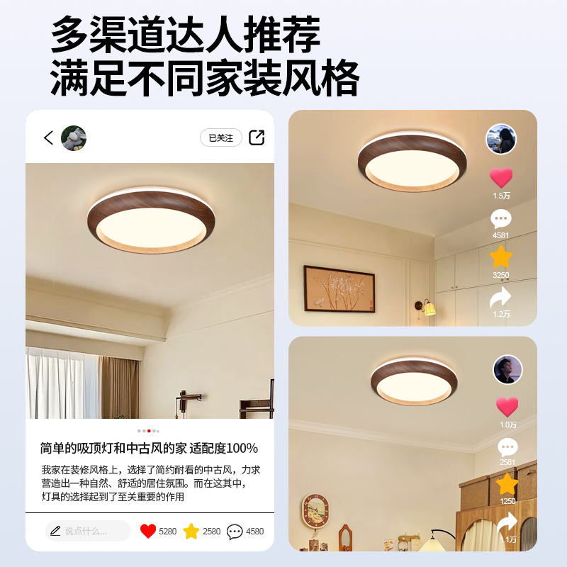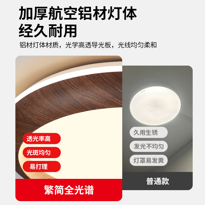 天猫繁简星瞳吸顶灯胡桃木色中古风护眼新中式悬浮感主卧书房卧室灯具