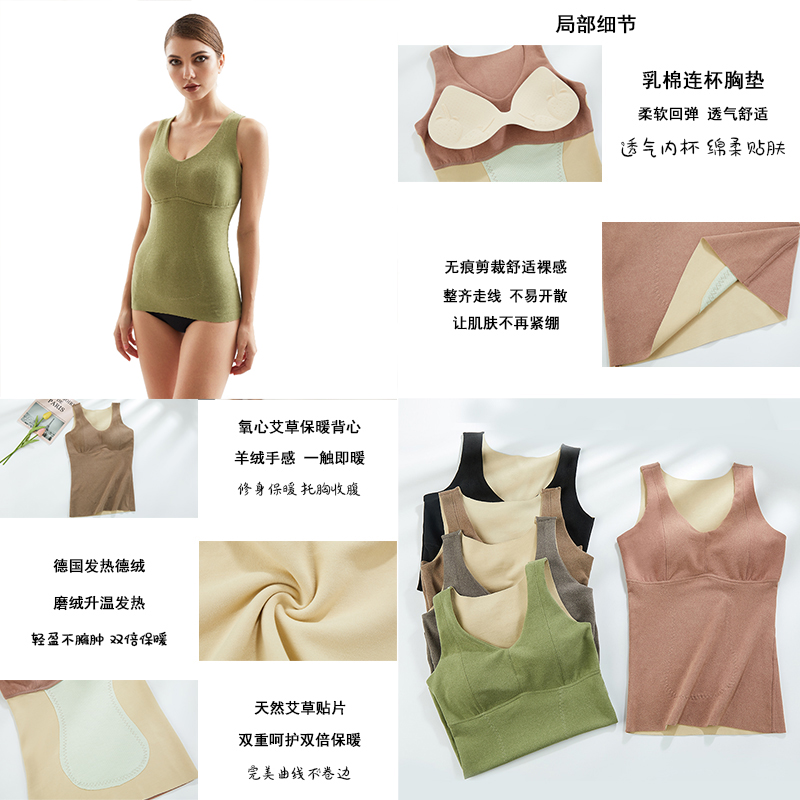 无痕保暖背心女士带胸垫德绒自发热加厚内搭打底上衣冬季新款内衣