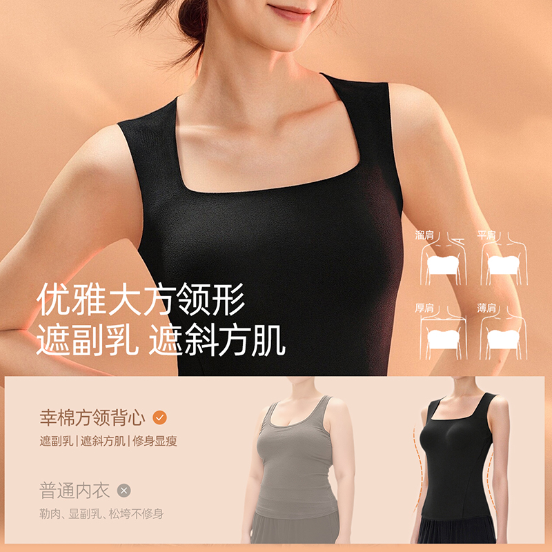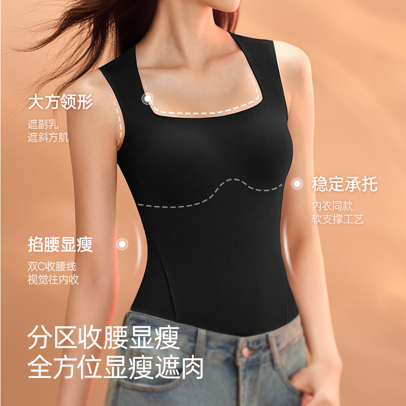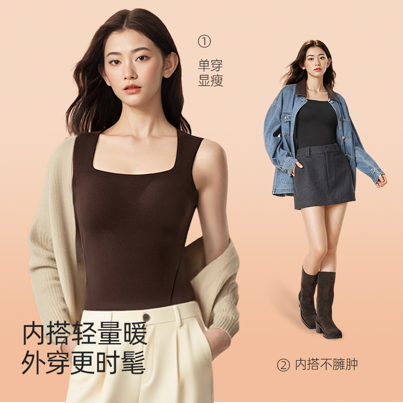 米娅林秋冬一体杯磨毛保暖背心珍珠胶原蛋白绒螺纹宽肩带显瘦吊带