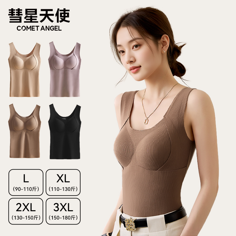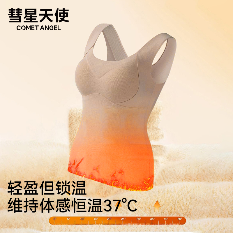 天猫彗星天使羊绒蚕丝保暖提拉背心带胸垫内搭外穿锁温蓄热秋冬内衣女
