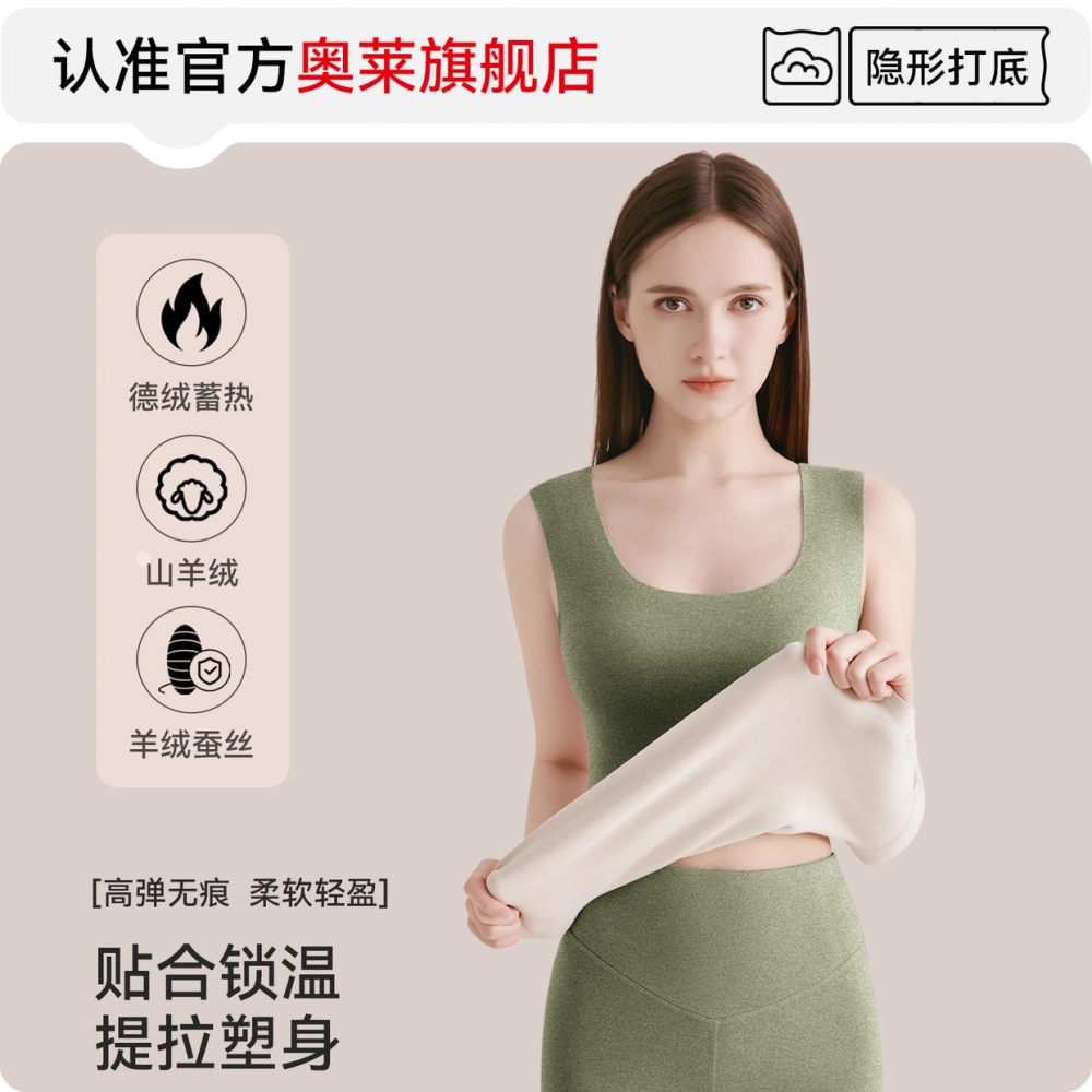 天猫都市丽人保暖背心女蚕丝德绒发热内衣加绒加厚无痕打底衫冬季上衣