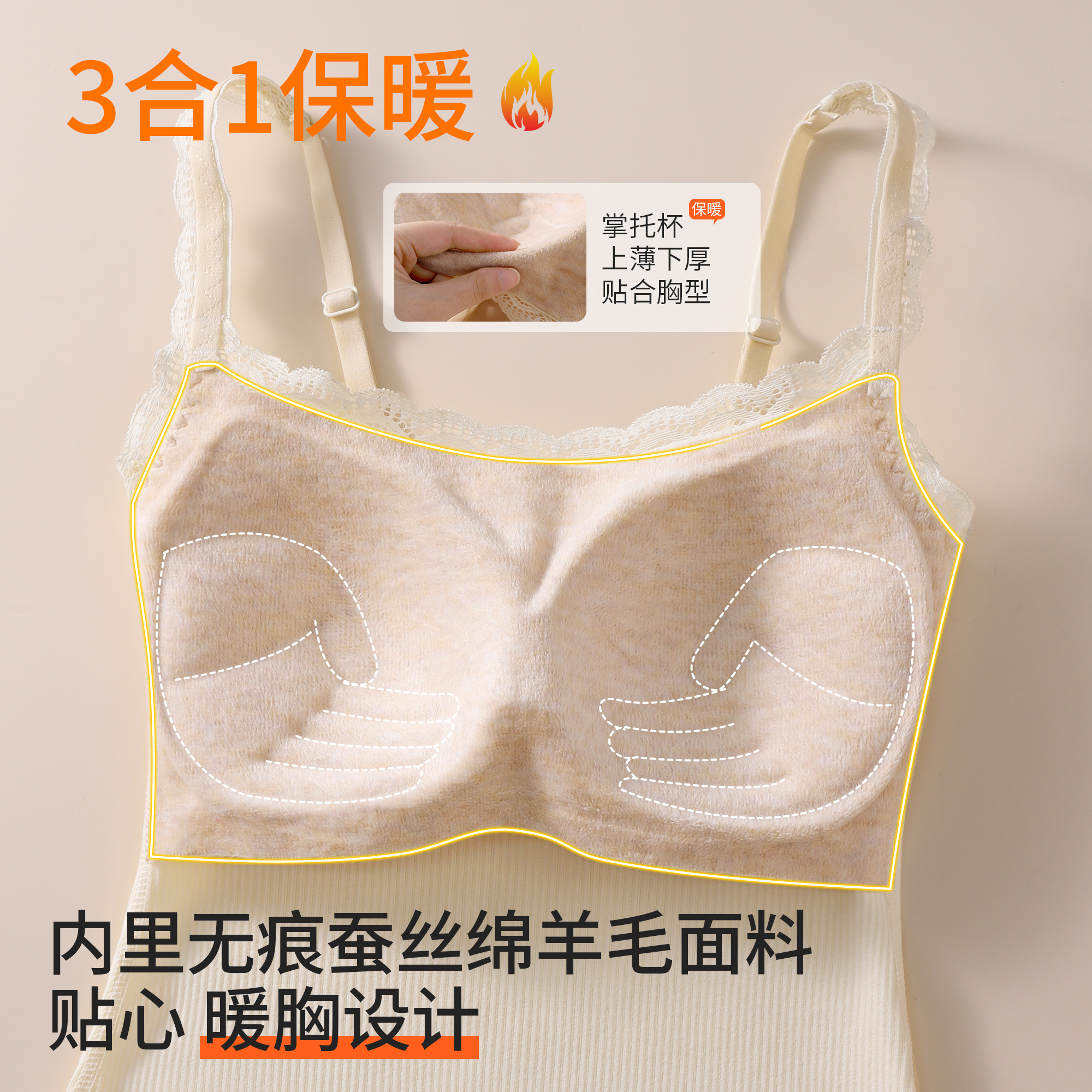 天彗星天使羊绒蚕丝保暖提拉背心带胸垫内搭外穿锁温蓄热秋冬内衣女