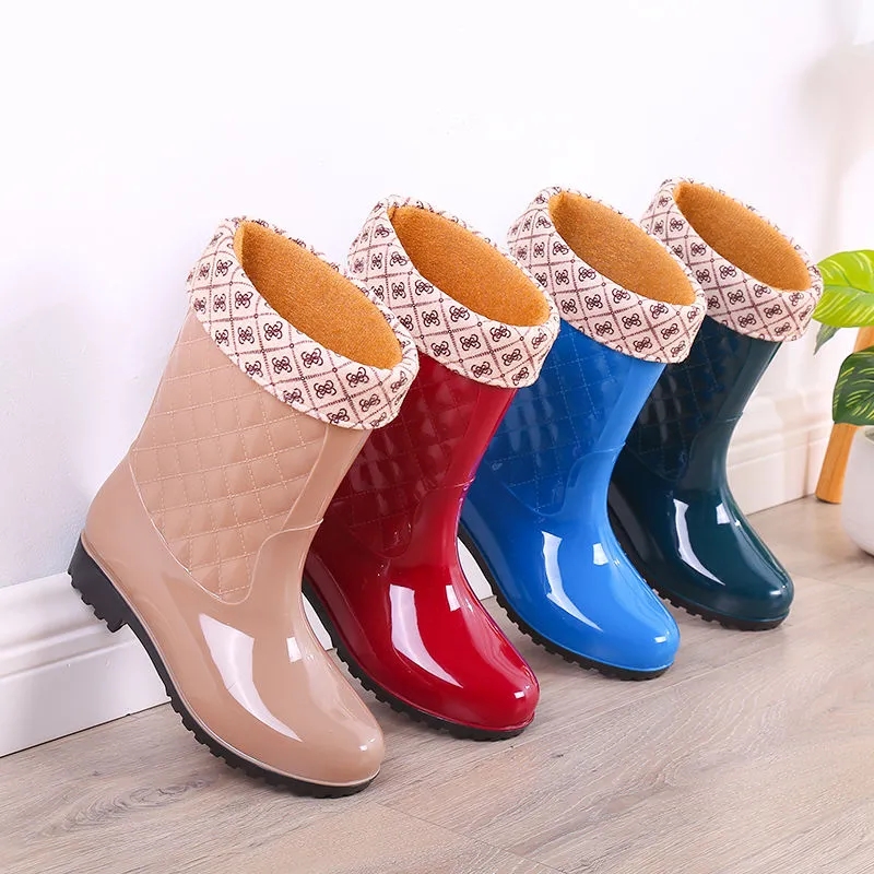 淘宝冬季加绒雨鞋女雨靴防滑防水鞋时尚保暖中筒成人加棉韩版胶鞋水靴