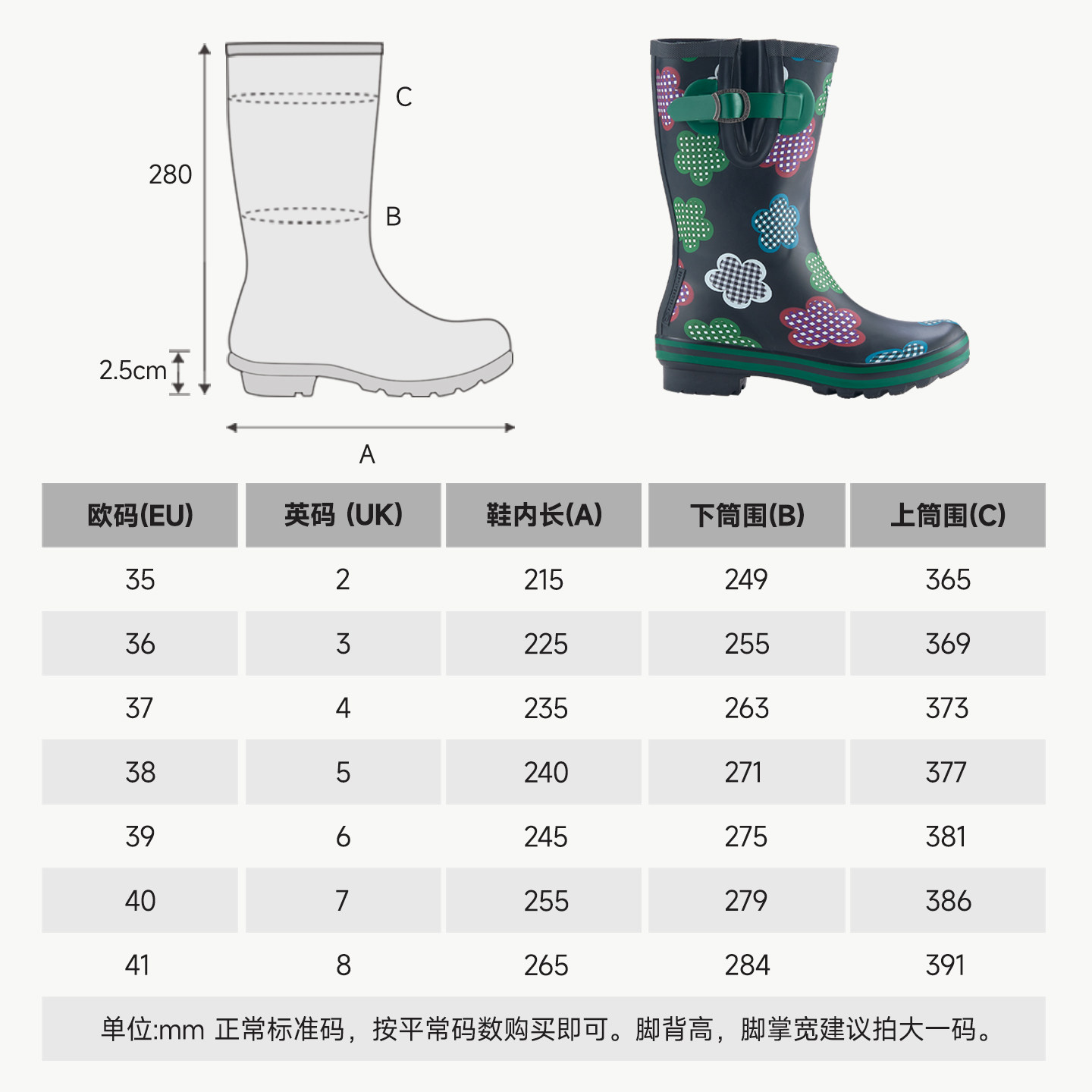 天猫evercreatures英国雨鞋雨靴女水鞋水靴防滑黑色印花中筒雨鞋 新款