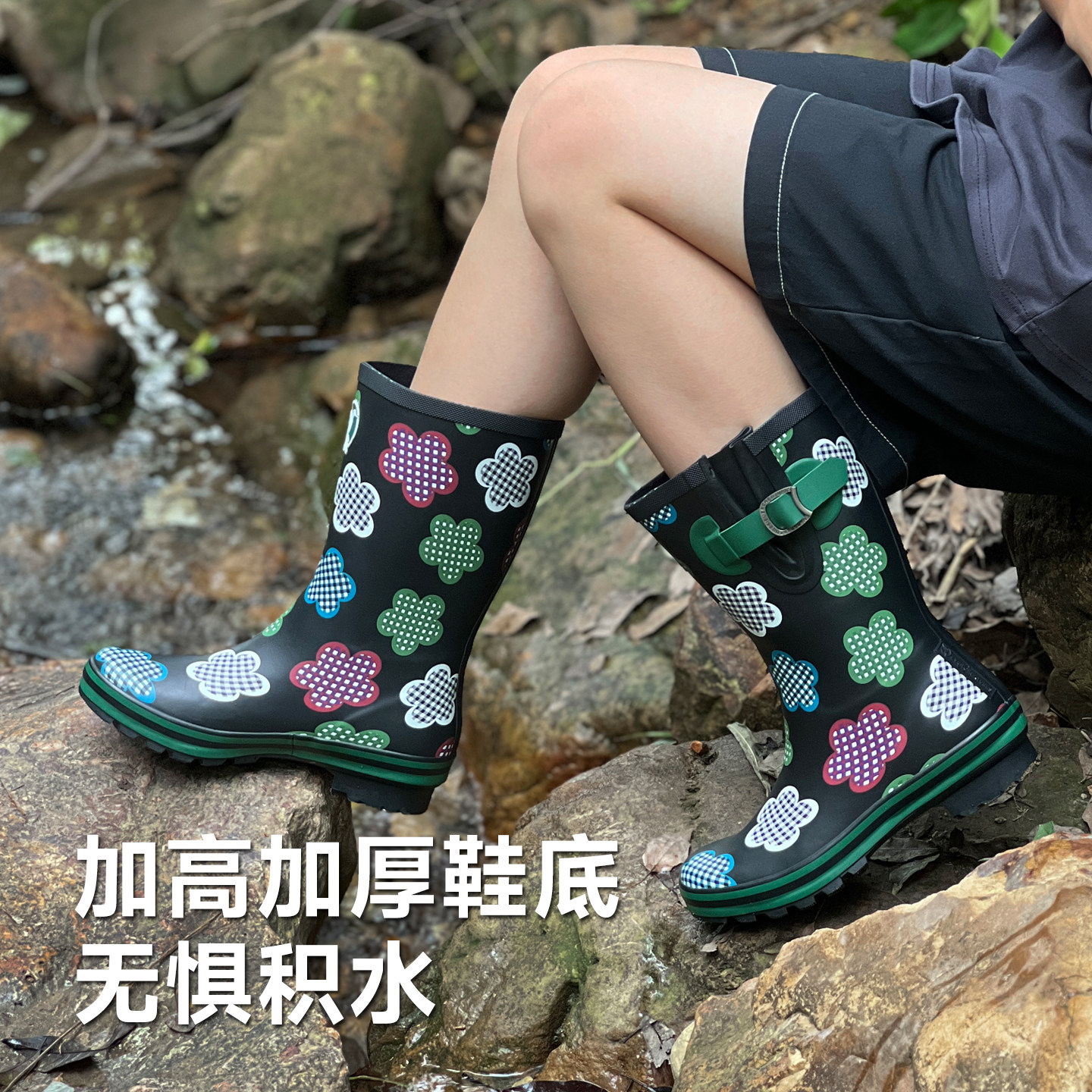 淘春夏时尚雨鞋女成人雨靴中筒水鞋牛筋底女士防滑套鞋高筒水靴胶鞋