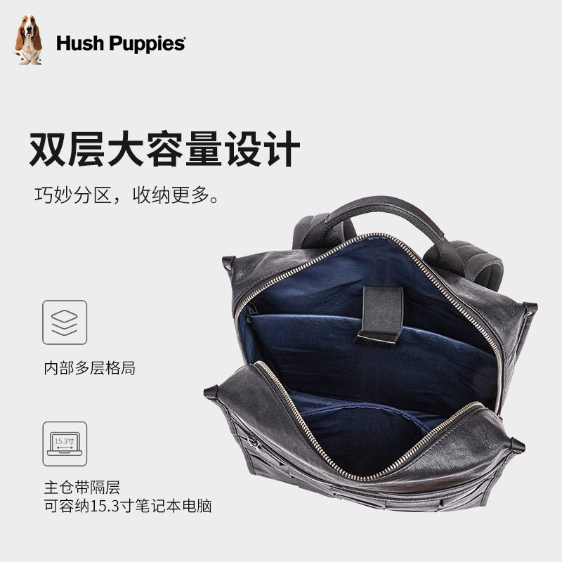 天猫暇步士双肩包男士新款时尚大容量背包真皮商务通勤电脑包旅行包男
