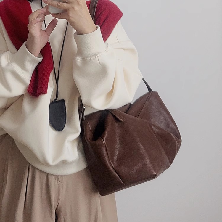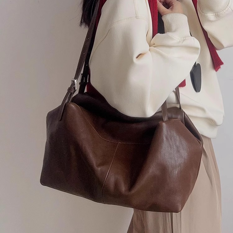 淘宝小众高级感头层植鞣牛皮托特包女大容量单肩斜挎包通勤旅行电脑包