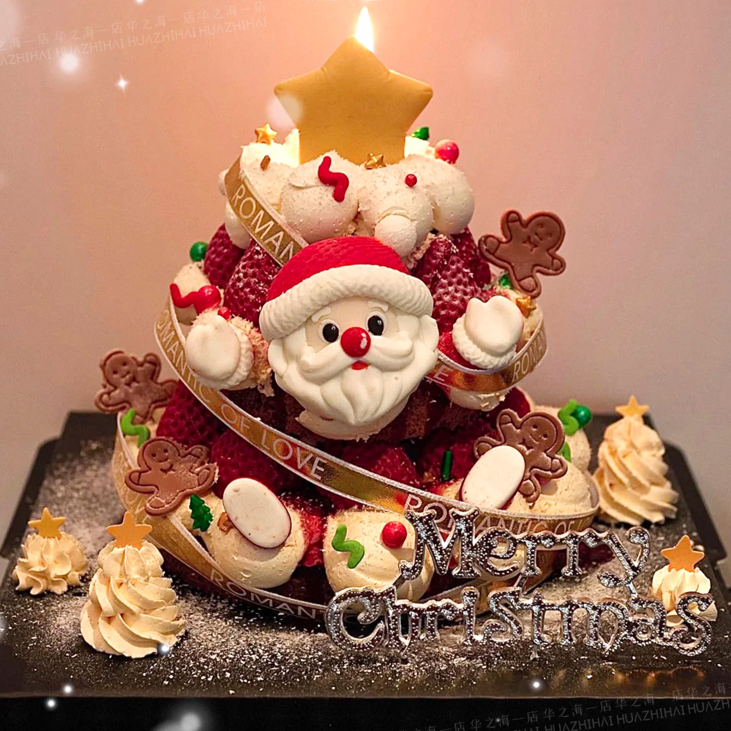 淘宝圣诞巧克力蛋糕装饰圣诞老人许愿树套装草莓塔配件糖珠甜品点缀