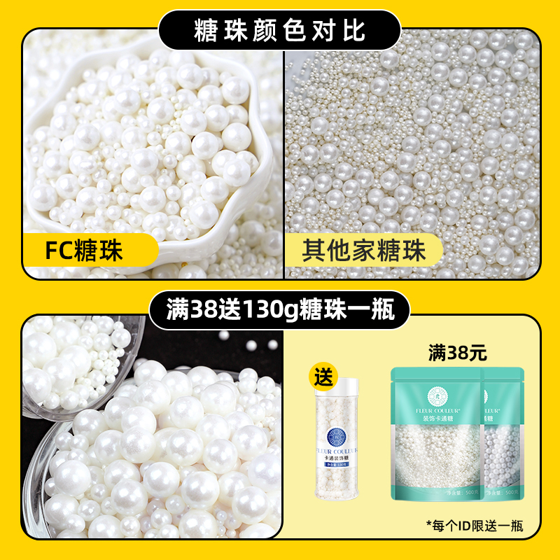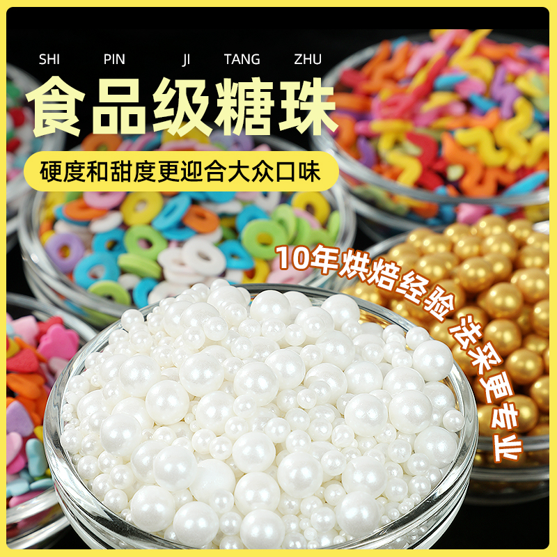 天猫fc糖珠蛋糕装饰珍珠糖豆可食用白色彩色金珠糖针圣诞烘焙装饰原料