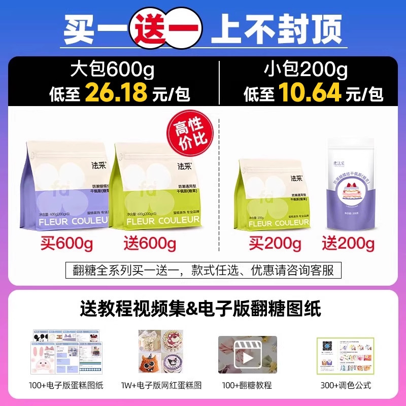 淘fc法采翻糖膏防潮干佩斯蛋糕装饰蝴蝶结翻糖皮糖牌烘焙材料人偶糕