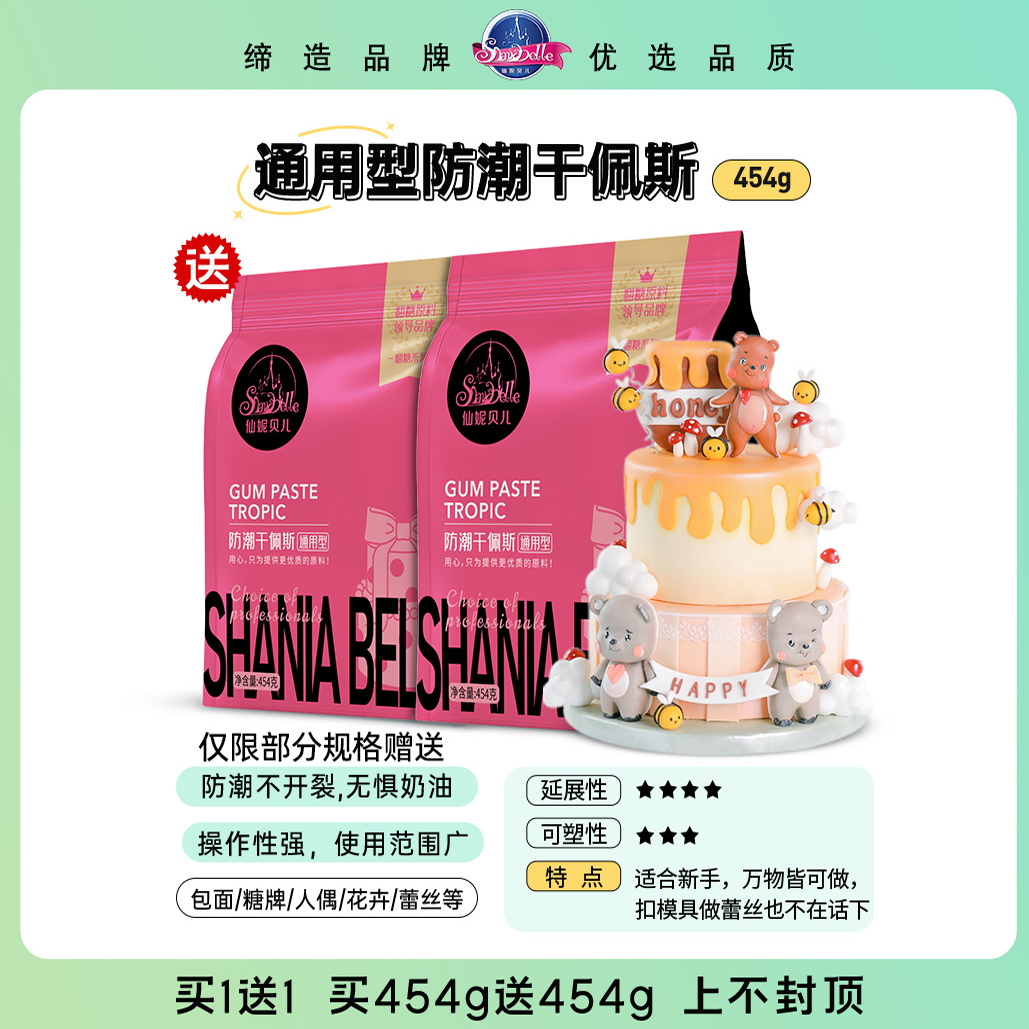 仙妮贝儿防潮翻糖膏包面奶香翻糖蛋糕食用装饰糖皮1kg桶装原材料