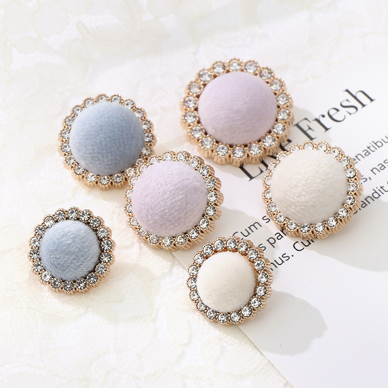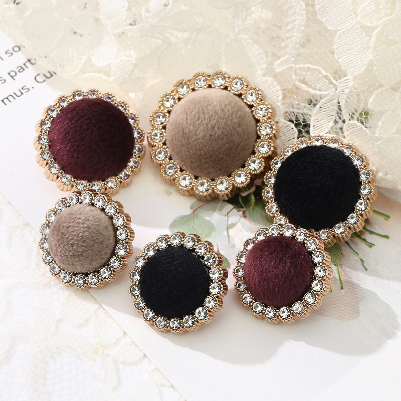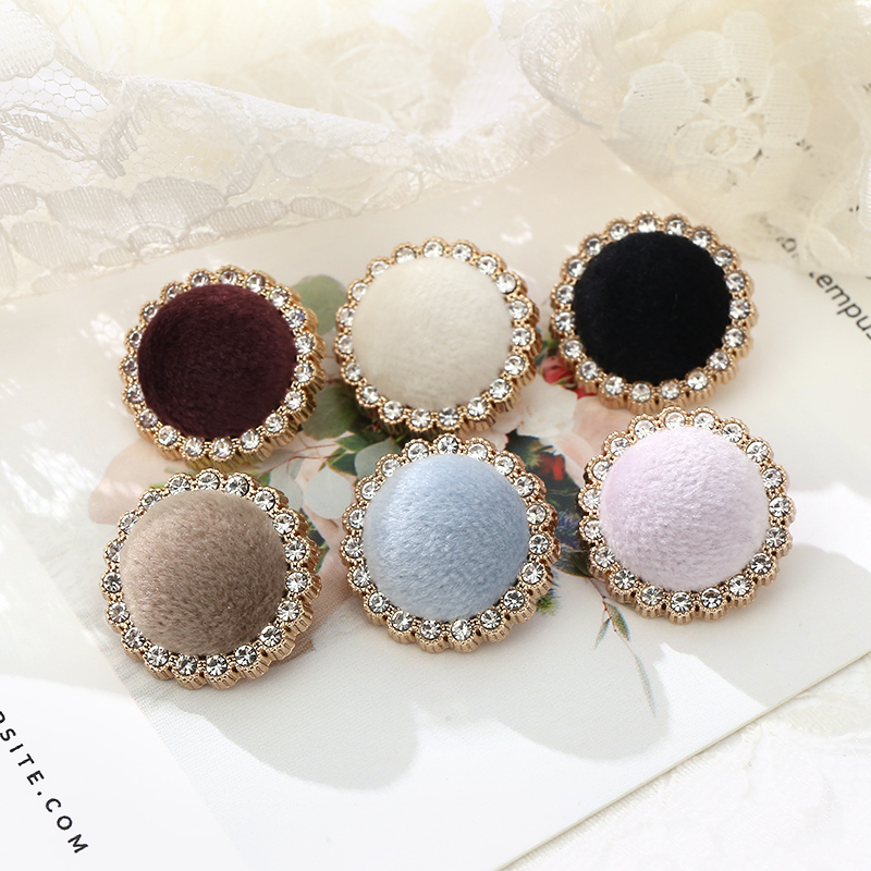 淘宝金属绒布镶钻圆形扣子羊绒大衣外套包布纽扣女装上衣轻奢风手缝扣