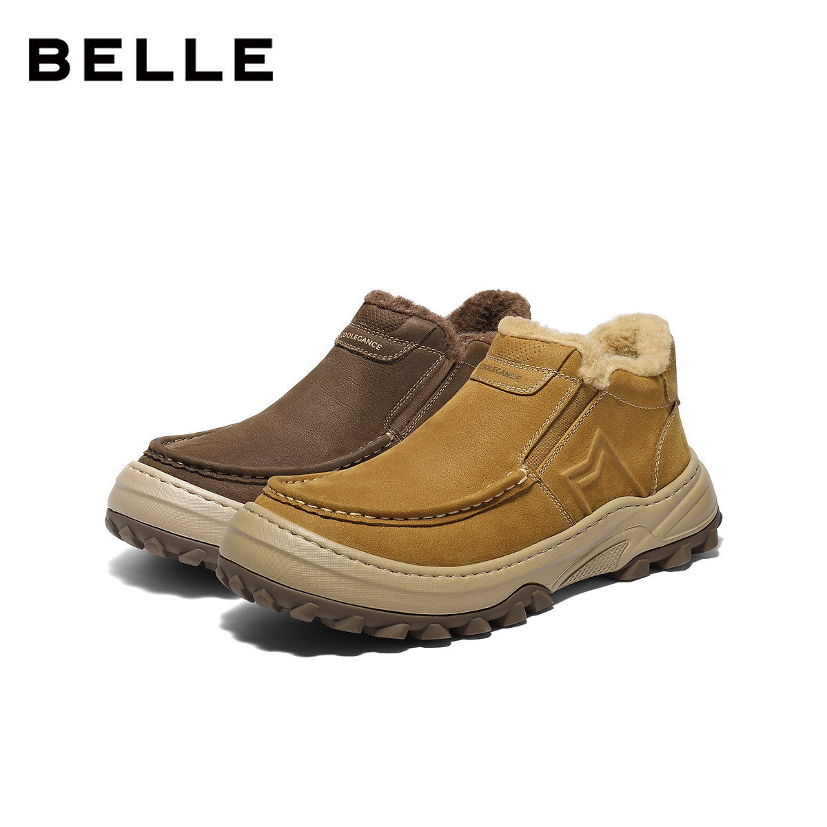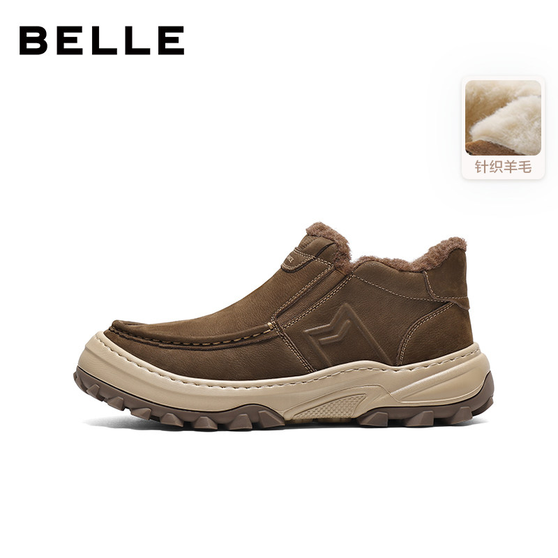 天猫百丽男士一脚蹬休闲东北保暖雪地棉靴男26冬新款牛皮厚底A2285AD6