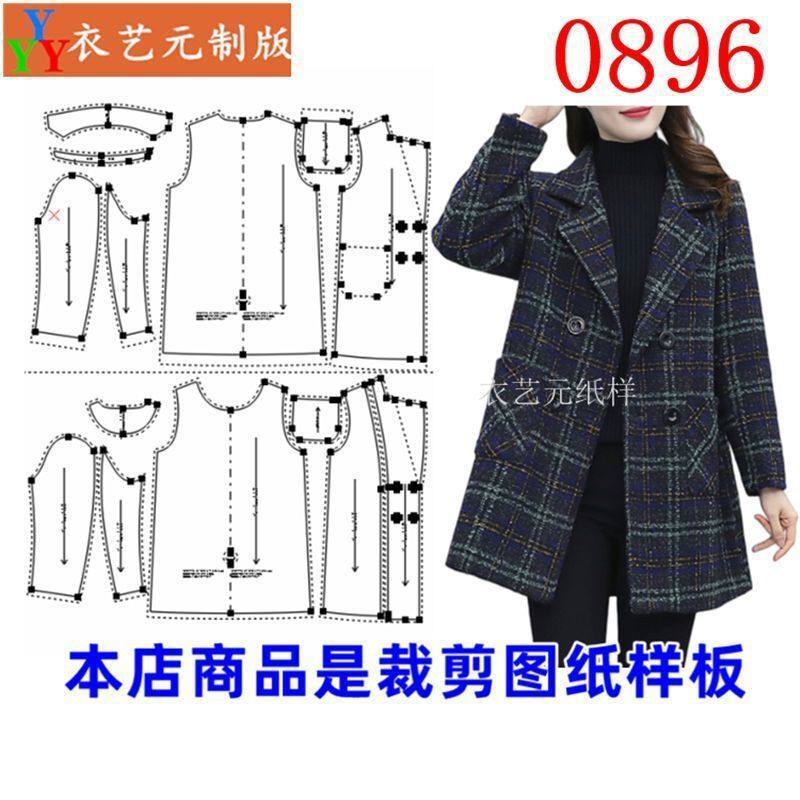 淘宝0896衣服装裁剪图纸样板新款春秋毛呢子外套冬西装中长款大衣女装