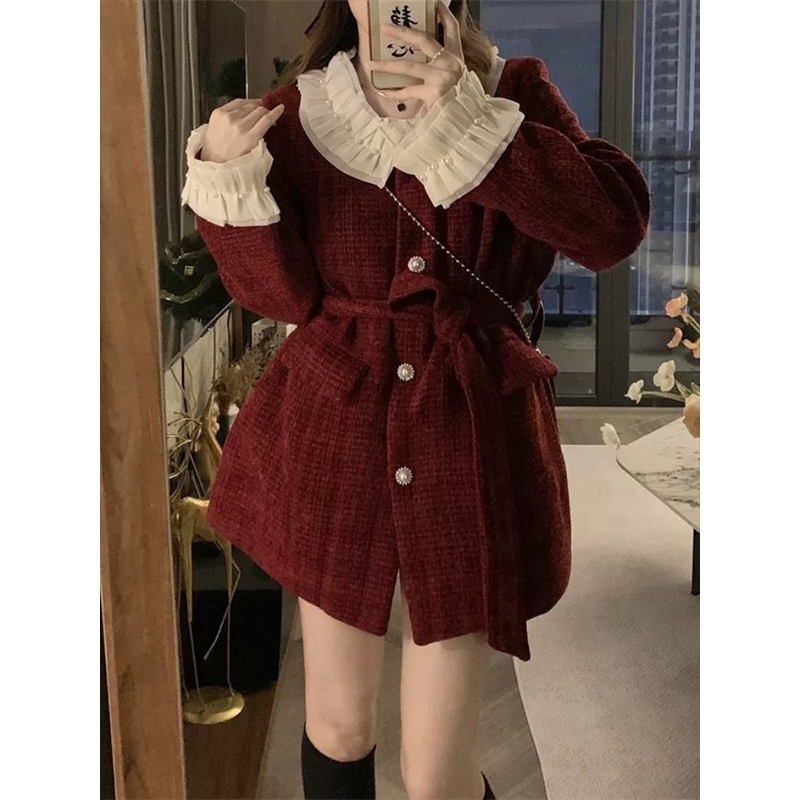 天猫新年战袍红色毛呢外套女秋冬2025新款富家千金小香风夹棉呢子大衣
